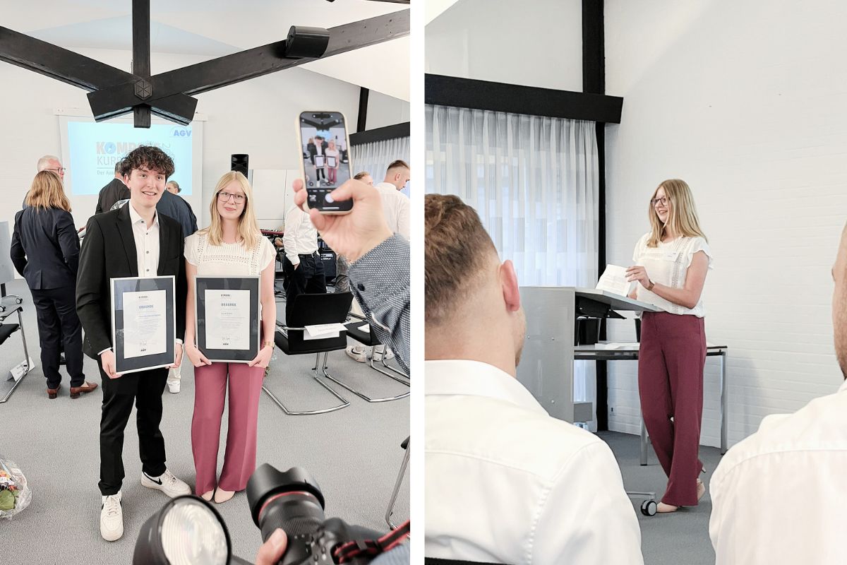 Applaus für Anna Grever: Die Big Dutchman-Auszubildende zur Kauffrau für Marketingkommunikation wurde kürzlich mit dem renommierten „Kompass 2025“-Preis des Arbeitgeberverbandes Oldenburg ausgezeichnet! Gemeinsam mit einem weiteren Preisträger erhielt sie die mit 1.200 Euro dotierte Auszeichnung in der Kategorie „Kaufmännische Auszubildende“.
