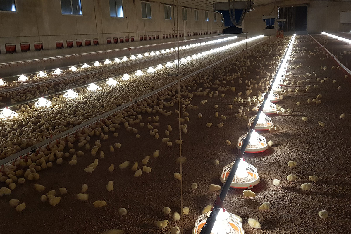 FlexLED glo упрощает доступ бройлеров к корму. Т.о. именно в первые дни жизни цыплята смогут еще проще находить корм, Это обеспечивает оптимальный старт для цыплят.