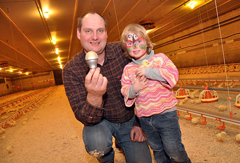 Утро для петушков Дирка Бокхорста начинается неторопливо. Как и на рассвете, в птичниках нижнесаксонского Эмстека (Германия) постепенно светлеет. Довольное кудахтанье слышно в помещении птичника. В течение еще получаса помещение птичников заполняет теплый свет. Этот свет исходит однако не от обычных лампочек 40 Вт, а от высококачественных светодиодных (СИД) ламп. Установлен и регулятор яркости высокого качества, оберегающий птицу от стресса и не вносящий диссонанс в работу остального оборудования птичника.