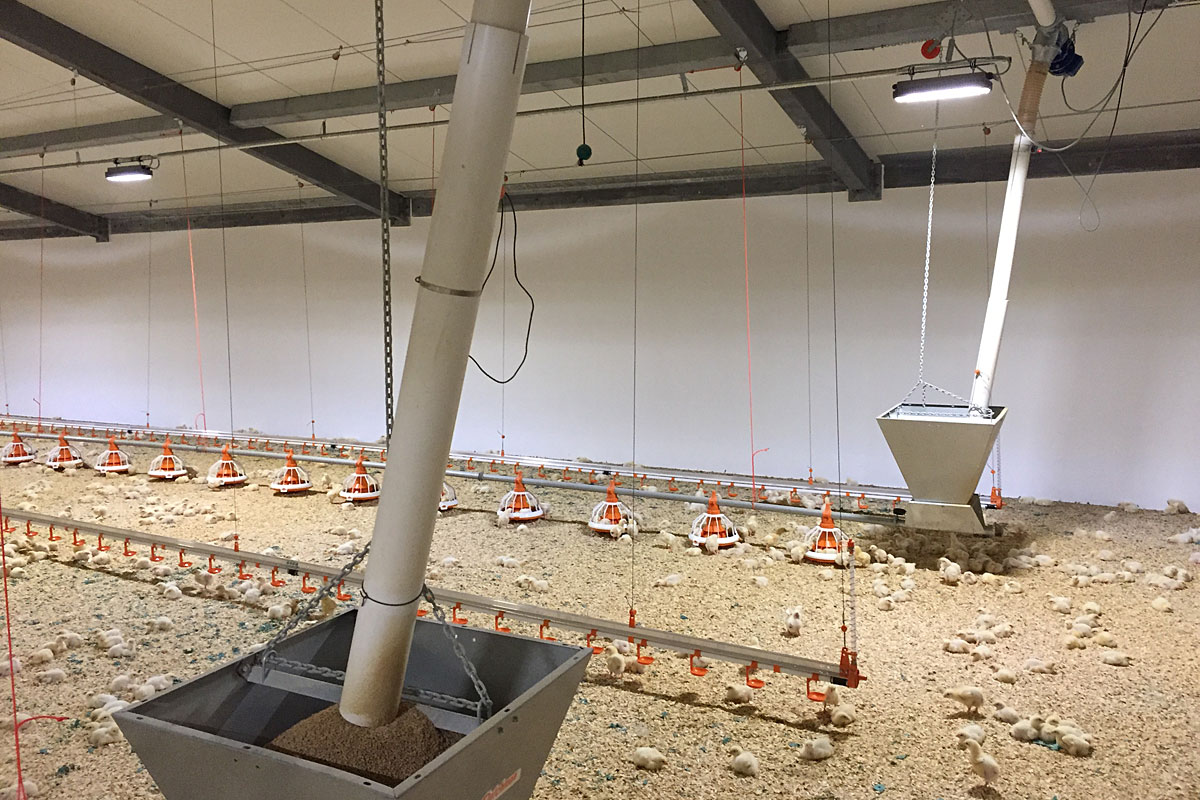Новая постройка размером 60 x 28 метров выглядит как одно здание, но на самом деле в ней размещены два птичника, разделенные промежуточной стенкой. Все оборудование, от систем содержания и кормораздачи до систем эффективного управления птичниками, соответствует последнему слову техники.