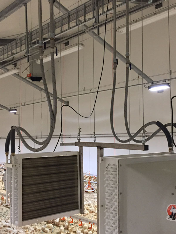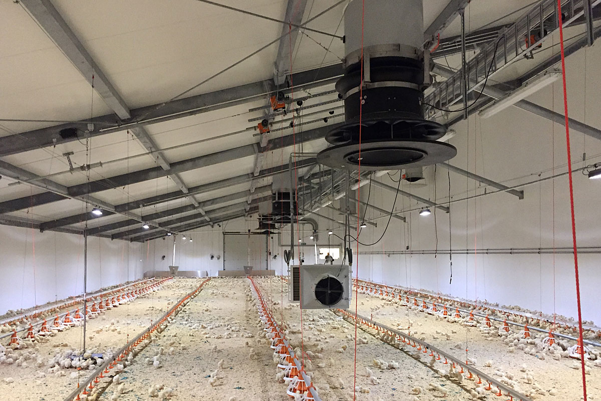 По этой причине выбор предприятия пал на приточный камин Fumus с подачей свежего воздуха через крышу. В зависимости от времени года и текущих потребностей, камин подает свежий или смешанный воздух, или же производит рециркуляцию. Благодаря этому птице всегда обеспечивается оптимальный микроклимат.