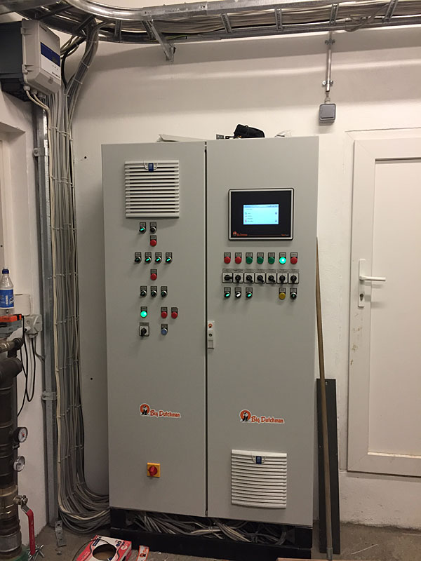 Кормораздача осуществляется с помощью проверенной временем системы Augermatic с кормушками Fluxx 330. За гибкое и бесперебойное управление птичником отвечает компьютер микроклимата и производства ViperTouch. Система управления обслуживается предельно просто через сенсорный экран, имеет три режима эксплуатации на выбор и подходит для всех общепринятых видов вентиляции.