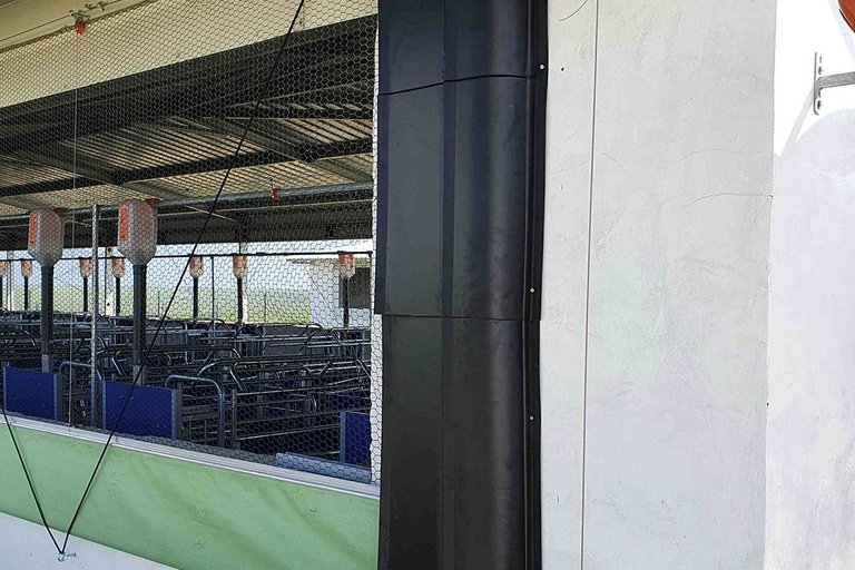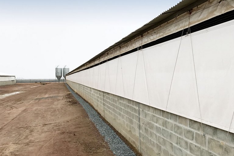 Natural ventilation in pig and poultry houses is a good option especially in regions without frost – and available at a reasonable price. To control the air exchange, roller curtains with electric winches are used on both long sides of the building, which is a well-proven concept to open and close the barn.