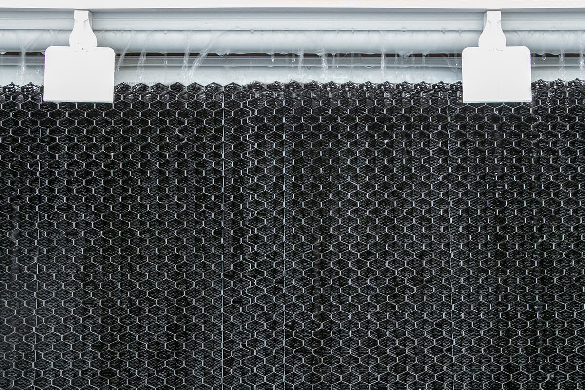В основе данной системы охлаждения зало-жен принцип испарительного эффекта, в связи с чем она применяется преимущественно в регионах с жаркими и сухими летними сезонами. При этом чем ниже относительная влажность воздуха и чем выше температура, тем сильнее эффект охлаждения.