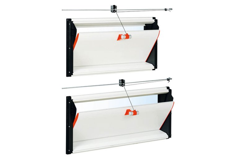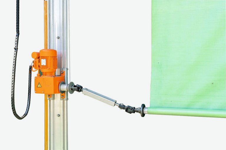 Специальный привод лебедки исключает весовую нагрузку на намоточную трубу, что обеспечивает оптимальный процесс наматывания шторы и щадит ткань. Системы, открывающиеся снизу-вверх, поставляются со стационарно смонтированным приводом либо с самоподъемным приводом. Это позволяет отказаться от длинной телескопической трубы при работе с очень высокими шторами.