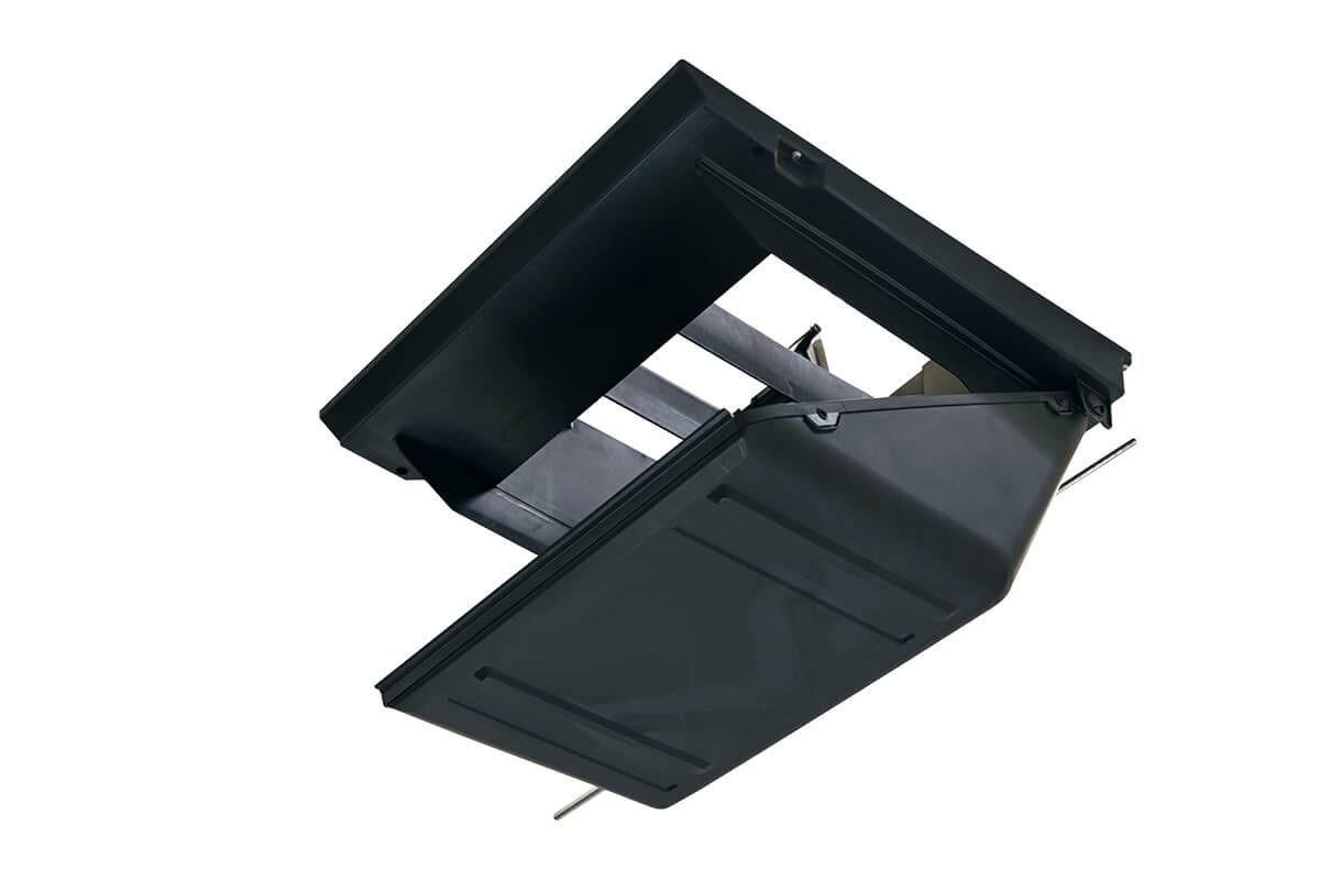 Потолочный клапан CL 1540 изготовлен из пригодной для вторичной переработки, ударопрочной, сохраняющей форму и устойчивой к ультрафиолетовому излучению пластмассы. Монтаж следует по возможности производить в изолированное промежуточное перекрытие. Клапан CL 1540 закрывается надежно и безопасно, даже если данное перекрытие имеет угол наклона до 15°.