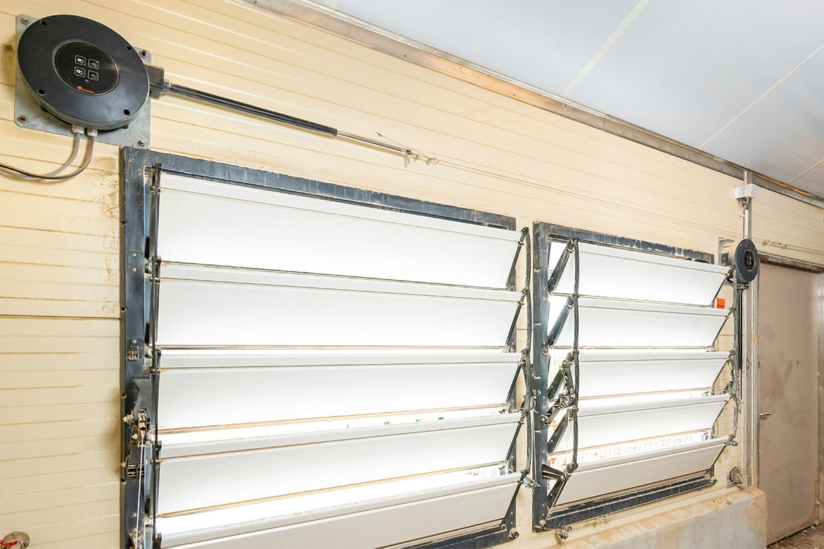 Отлично зарекомендовавшие себя на протяжении многих лет приточные клапаны изготовлены из пластмассы, пригодной для вторичной переработки, ударопрочной, сохраняющей форму и устойчивой к УФ-излучению. Изолированная заслонка клапана удерживается в закрытой позиции с помощью пружин из нержавеющей стали и герметично закрывает птичник снаружи. Открытие заслонки осуществляется тяговым усилием вниз. Это позволяет осуществлять точное управление открытием клапанов в любое время года.