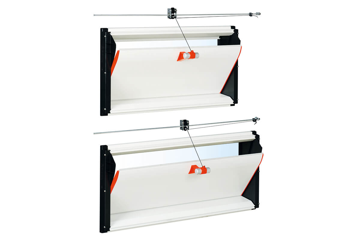 Рекомендованы к применению, если туннельное отверстие не должно быть открыто сразу полностью. Более прохладный свежий воздух поступает при этом в корпус сверху, не попадая сразу же на участки с птицей. Специальный выравнивающий механизм телескопического соединения предотвращает натяжение шторы, делая последующую юстировку излишней.