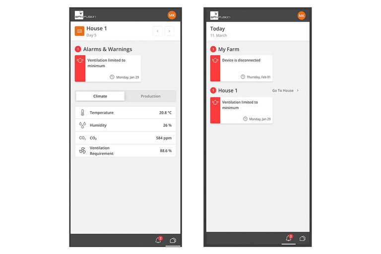 При работе с нашими системами менеджмента BFN Fusion и BigFarmNet сигналы тревоги из всех приложений поступают посредством всплывающих сообщений на вашем смартфоне. Т.о. вы всегда будете проинформированы, где бы вы ни были. Это даст вам возможность оперативно реагировать на ситуацию и предотвращать негативные последствия.