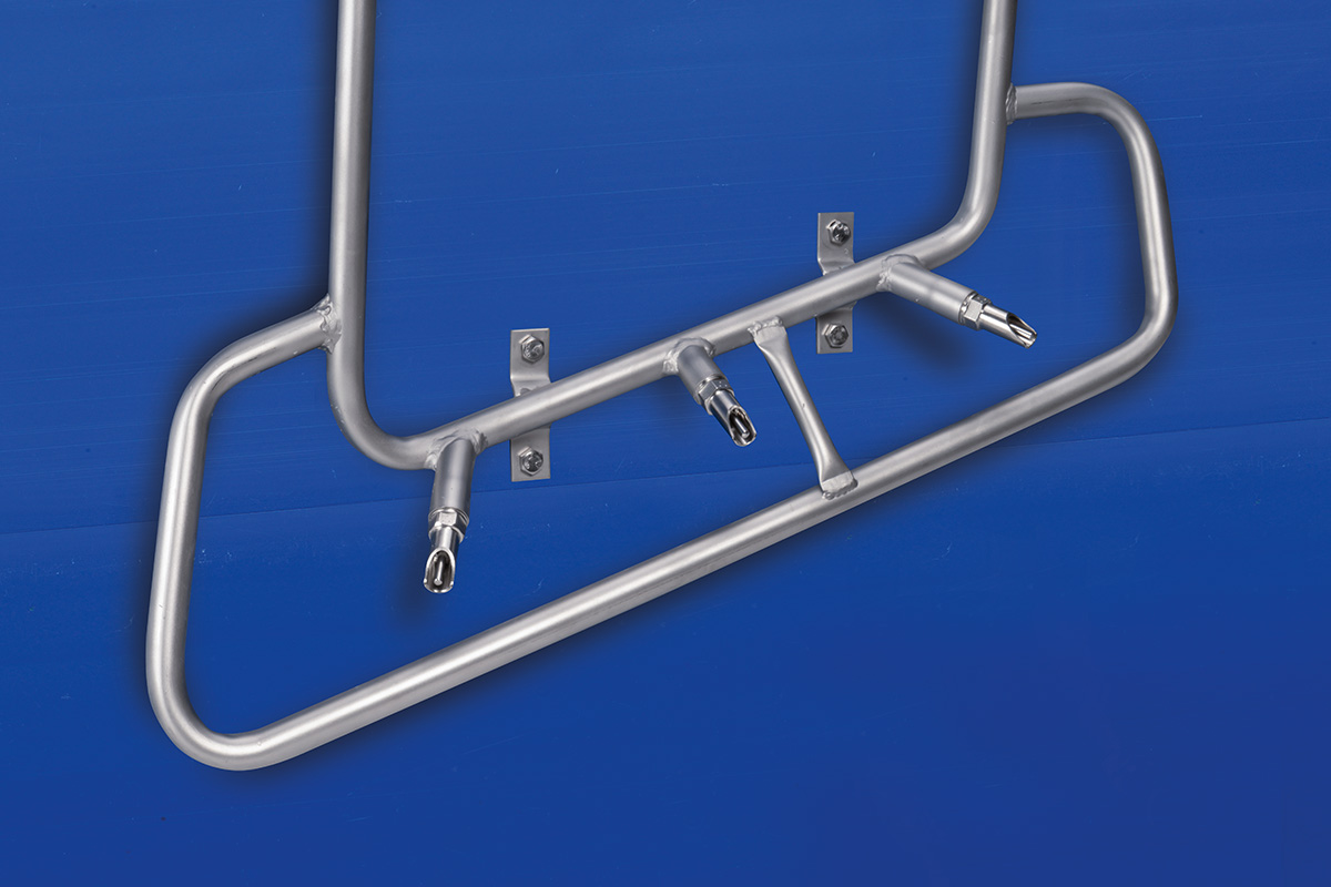 Управляя электромагнитными клапанами, установленными между главной и вспомогательной линиями, интервалы распыления и паузы системы замачивания можно регулировать индивидуально, в зависимости от степени загрязнения. В распоряжении имеются форсунки на 360°или 180°. Гибкая подвеска системы замачивания предотвращает повреждения струей воды из моющего аппарата высокого давления. Система может быть легко адаптирована к тем или иным размерам животноводческого помещения.