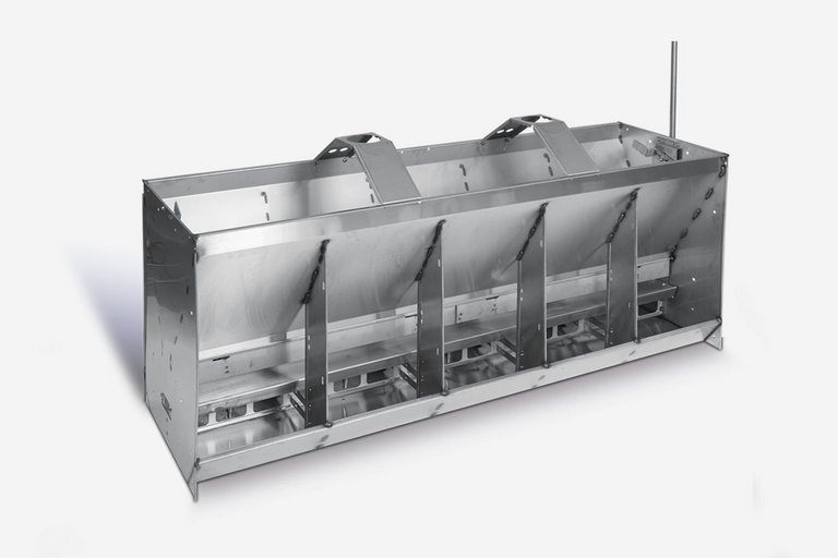 - кормушка, литая под давлением с глубокой вытяжкой, из нерж. ст. на удалении от пола → легкая, основательная чистка под кормушкой;