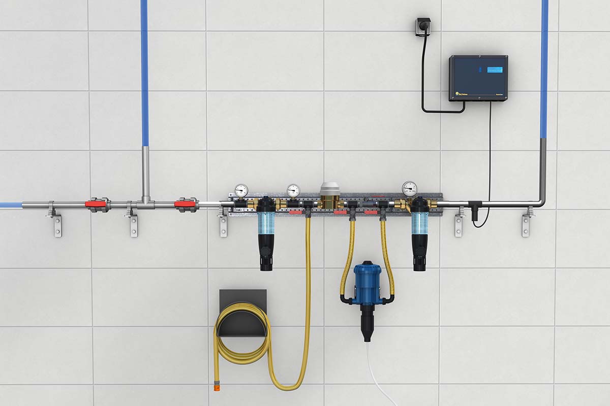 Предлагаемая компанией Big Dutchman система замачивания включает в себя систему управления, облегчает чистку помещения по завершении откормочного тура, сокращая ее продолжительность и таким образом экономит рабочее время. Кроме того, значительно сокращается количество воды, необходимое для мойки аппаратом высокого давления.