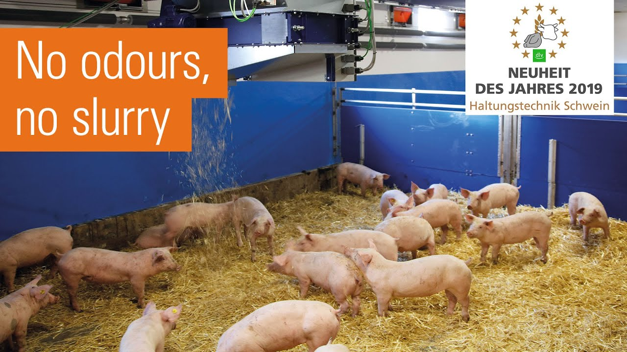 A special straw management combined with a matching climate control system guarantees that moisture is constantly removed from the straw bedding so the straw and manure remain dry. Before the pigs are moved in, an organic activator is added to the straw. This activator starts an aerobic decomposition process: cold composting below 40 °C. The depth of straw remains shallow, with the amount of bedding required being comparatively small.