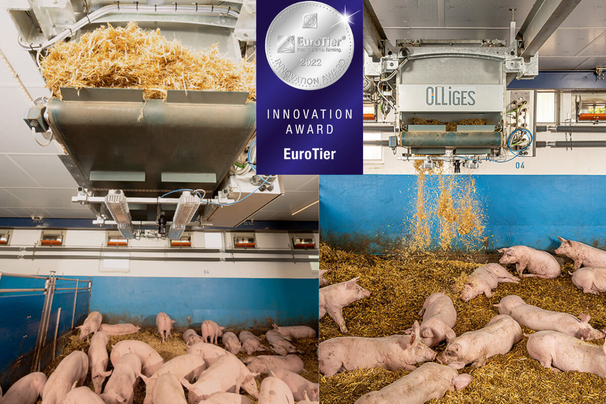 To reduce the workload, we have available an automated solution for re-bedding with small quantities of straw. The OlliGes straw robot developed by Big Dutchman scans the bedding with a camera and automatically dispenses additional straw over spots that are very dark.