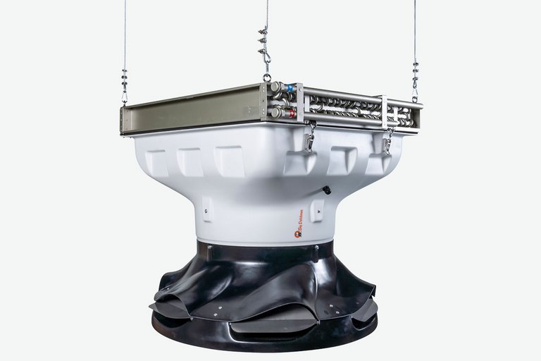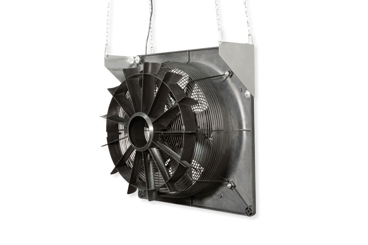 Циркуляционные вентиляторы обеспечивают более равномерное распределение теплого воздуха в птичнике наряду с более равномерным распределением птицы по корпусу прежде всего в условиях длинных корпусов. Для этого они устанавливаются на расстоянии 20-30 метров от теплогенераторов. Высокопроизводительный циркуляционный вентилятор FC050-4EQ оснащен к тому же колесом спрямления воздушного потока.