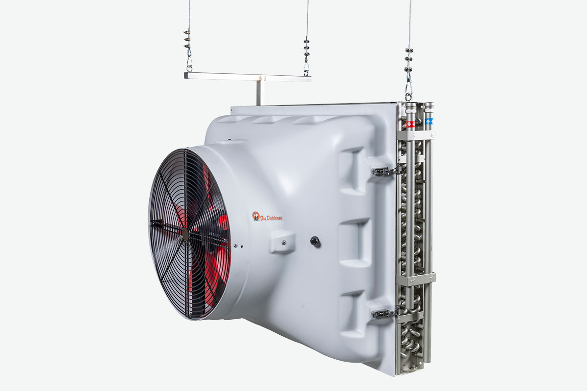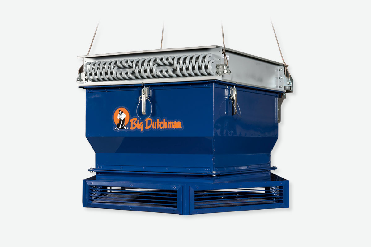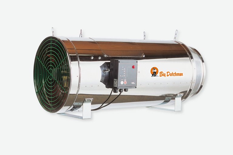 Разумеется, возможно и применение котлов, работающих на газе или жидком топливе. Особенно предпочтительным является использование тепла, вырабатываемого блочными электростанциями или биогазовыми установками. Big Dutchman может предложить вам три разные модели, состоящие из пластинчатого элемента, вентилятора и распределителя.