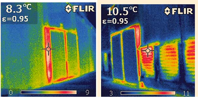 Поэтому необходимо проверять стены, крышу и пол на предмет наличия возможных негерметичных мест и мостиков холода. Здесь отдельно следует упомянуть большие ворота, окна, а также приточные и вытяжные вентиляционные отверстия. Тепловизионная камера дает быстрое и четкое представление (рис. 3).
