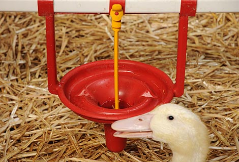 Кроме того, поилка способствует улучшению гигиены в птичнике: "Новая поилка оснащена специальным желобом обратного стока и защитой от перелива воды. Эти механизмы позволяют существенно снизить потери воды на содержании уток", - объясняет Йорг Хурлинг, говоря о преимуществах инновационной поилки Pekino. Малые потери воды в свою очередь благоприятно отражаются на состоянии подстилки в помещении птичника. Дополнительно поилка оснащена качающимся маятником, который обеспечивает подачу неизменно свежей воды. Механизм дополнительной подачи воды срабатывает, если птица задействует маятник клювом.