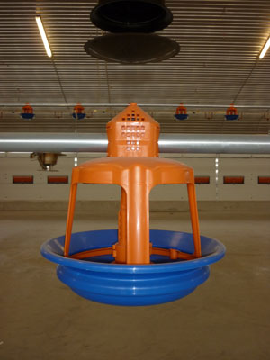 Для кормления используются чашечные кормушки Gladiator, подходящие как для доращивания, так и для откорма. Наполнение кормушек производится кормораздаточной системой Augermatic, уже много лет успешно используемой в птицеводстве. Особое внимание при разработке особо прочной и устойчивой кормушки уделялось простоте и эффективности ее чистки: благодаря открытой конструкции кормушки Gladiator она может быть быстро, но основательно очищена после каждого цикла откорма. Кормушка свободно качается на трубе, чаша и решетка вращаются. Это помогает предотвращать повреждения на грудке птицы.