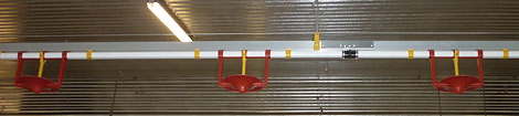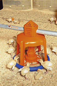 Замена чаш производится быстро и легко, поскольку в них используются исключительно вставные соединения. Еще одним преимуществом кормушки Gladiator является механизм ее наполнения: заполнение кормом может осуществляться как вручную на каждой кормушке, так и централизованно. Это значительно облегчает работу фермера. Кроме того, конус заполнения кормушки оснащен интегрированными грузиками. Этим предотвращается задействование механизма наполнения кормушек самой птицей.