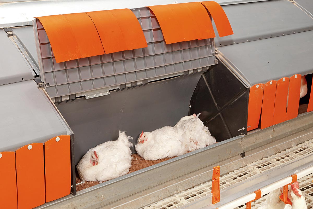 Другими инновациями, представленными здесь, является чашечная кормушка для современного выращивания индейки – Gladiator, а также групповое гнездо Relax. Данное гнездо, прежде всего, отлично подходит для содержания родительского стада бройлеров. Оно оснащено раздельной, легко поднимающейся крышей, что существенно облегчает обслуживание гнезда и транспортерной ленты яйцесбора.