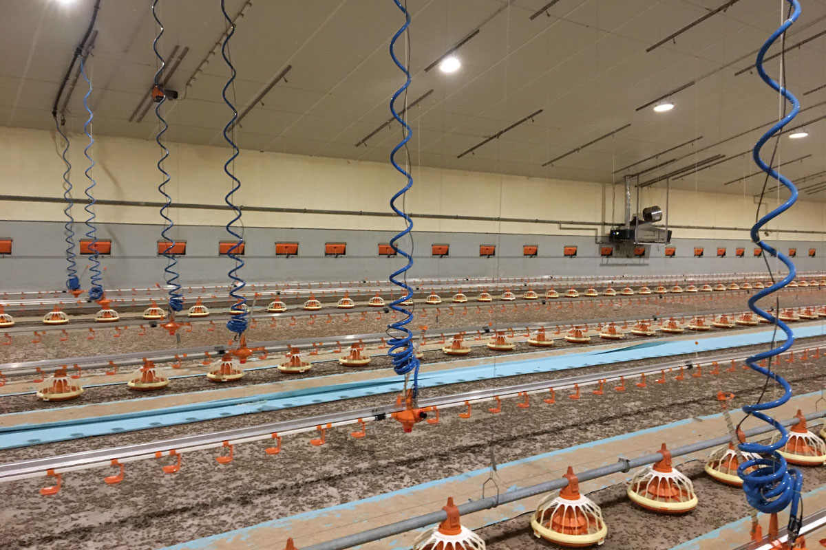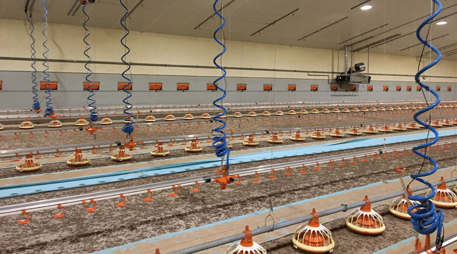 Необходимо преодолеть существующую в корпусе для откорма птицы разницу по высоте, составляющую от трех до шести метров, между проходящей под потолком центральной водопроводной магистралью и расположенными у пола линиями поения. Регулировка по высоте во время откормочного тура и сервисного периода возможна только за счет гибких участков водопроводов. В отношении обеспечения водой в целом это соответствует приблизительно четырем процентам от общей длины всей системы.