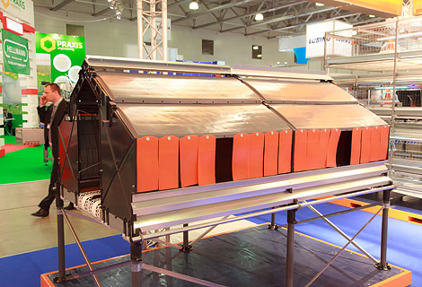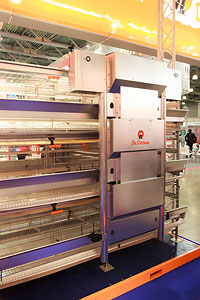 Здесь был широко представлен спектр оборудования для содержания мясной и яичной птицы. Большой интерес был проявлен к клеточному оборудованию для откорма бройлеров, в частности, к клеткам AVIMAX SLIDINGи AVIMAX TRANSIT. Посетителям были предложены новые модели клетки для содержания родительского стада с искусственным осеменением и ремонтного молодняка.Клетка для содержания ремонтного молодняка обеспечивает оптимальное соотношения фронта кормления и плотности посадки, соблюдение точного режима подачи корма при ограниченном кормлении. Верхний ярус клетки предназначен для доращивания петушков.