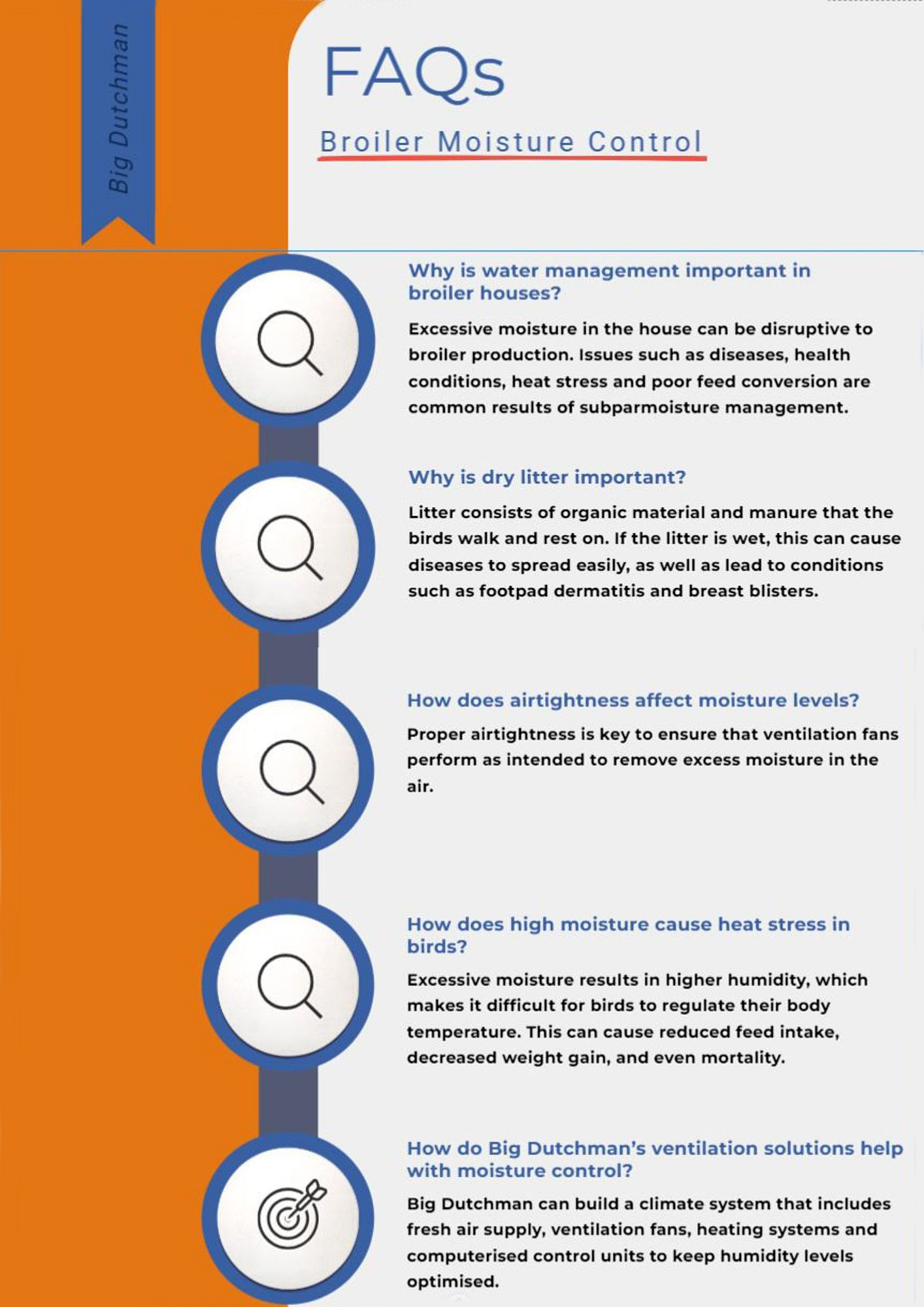 Инфографика: Изображение с часто задаваемыми вопросами по управлению влажностью в содержании бройлеров