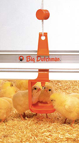 Big Dutchman предлагает широкий выбор оборудования для поения (включая аксессуары), которые позволяют птицеводам обеспечивать свое поголовье достаточным количеством чистой воды со стабильным давлением. Такие изделия, как узлы подключения к сети водоснабжения или ниппельные поилки, прочны и долговечны, плюс имеют защиту от протечек и переливов.