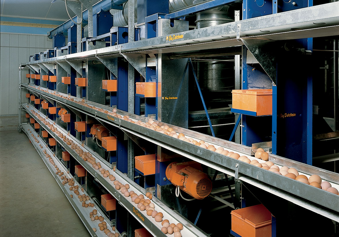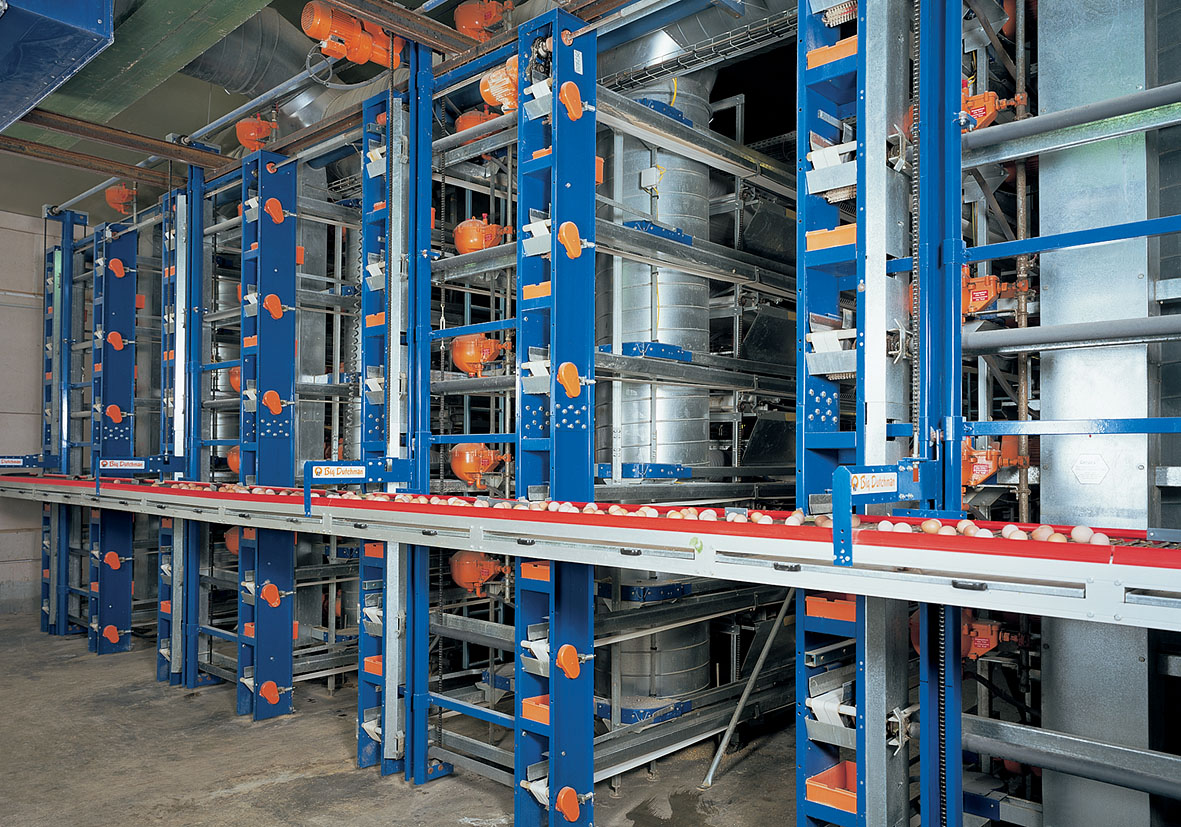 Элеватор гарантирует надежную транспортировку яйца с макс. 8 ярусов клеточной батареи до ленты поперечного сбора. Преимуществом является простой доступ ко всем рядам клеток на фоне низкой потребности в площади на конечном участке.